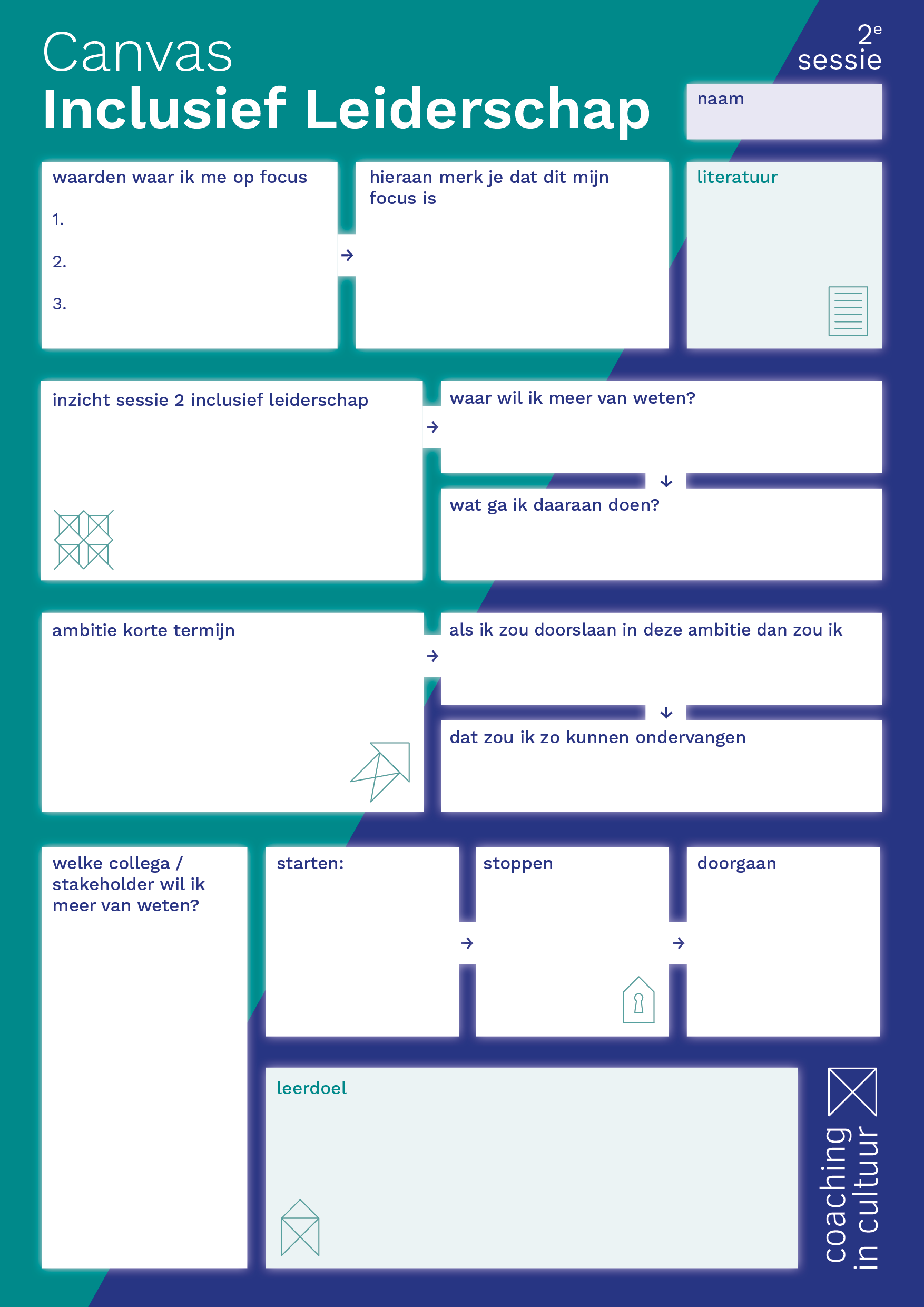 Coaching in de cultuur coacht individuen en organisaties in de kunst- en cultuursector. Wij hebben hun huisstijl, website en werkboeken vormgegeven.