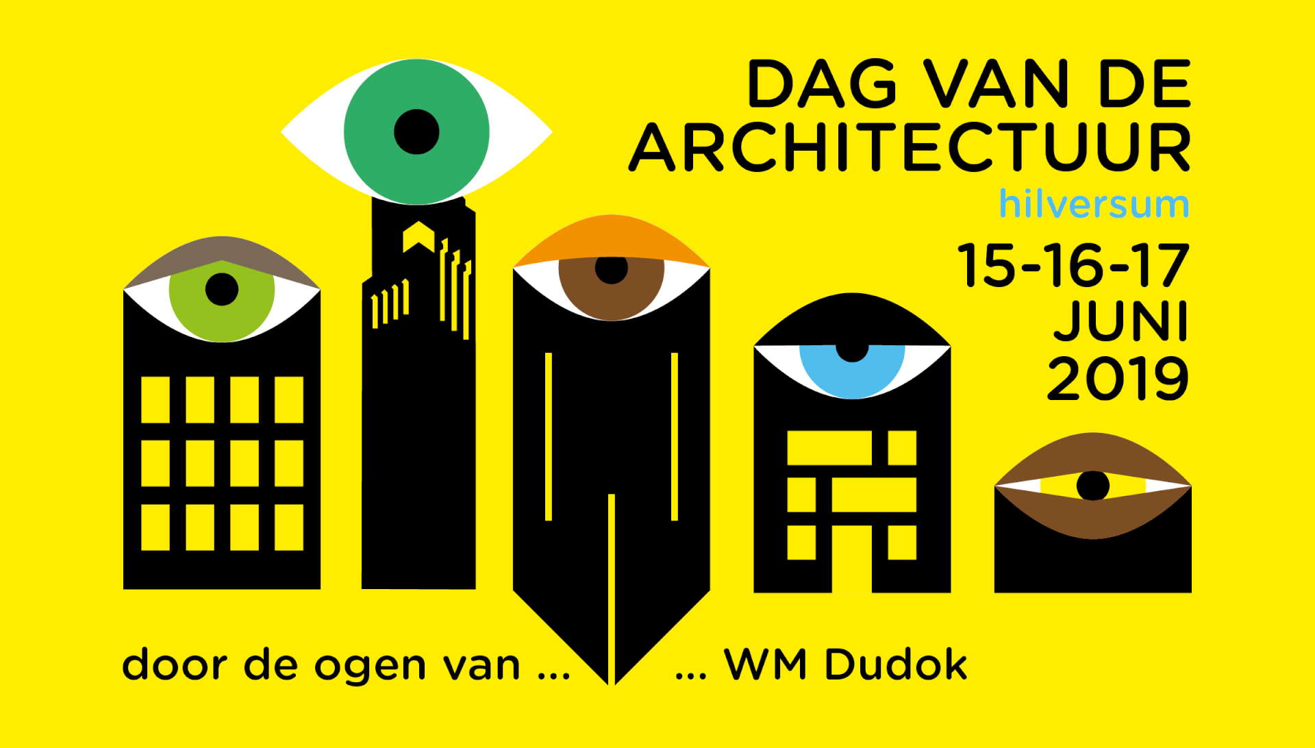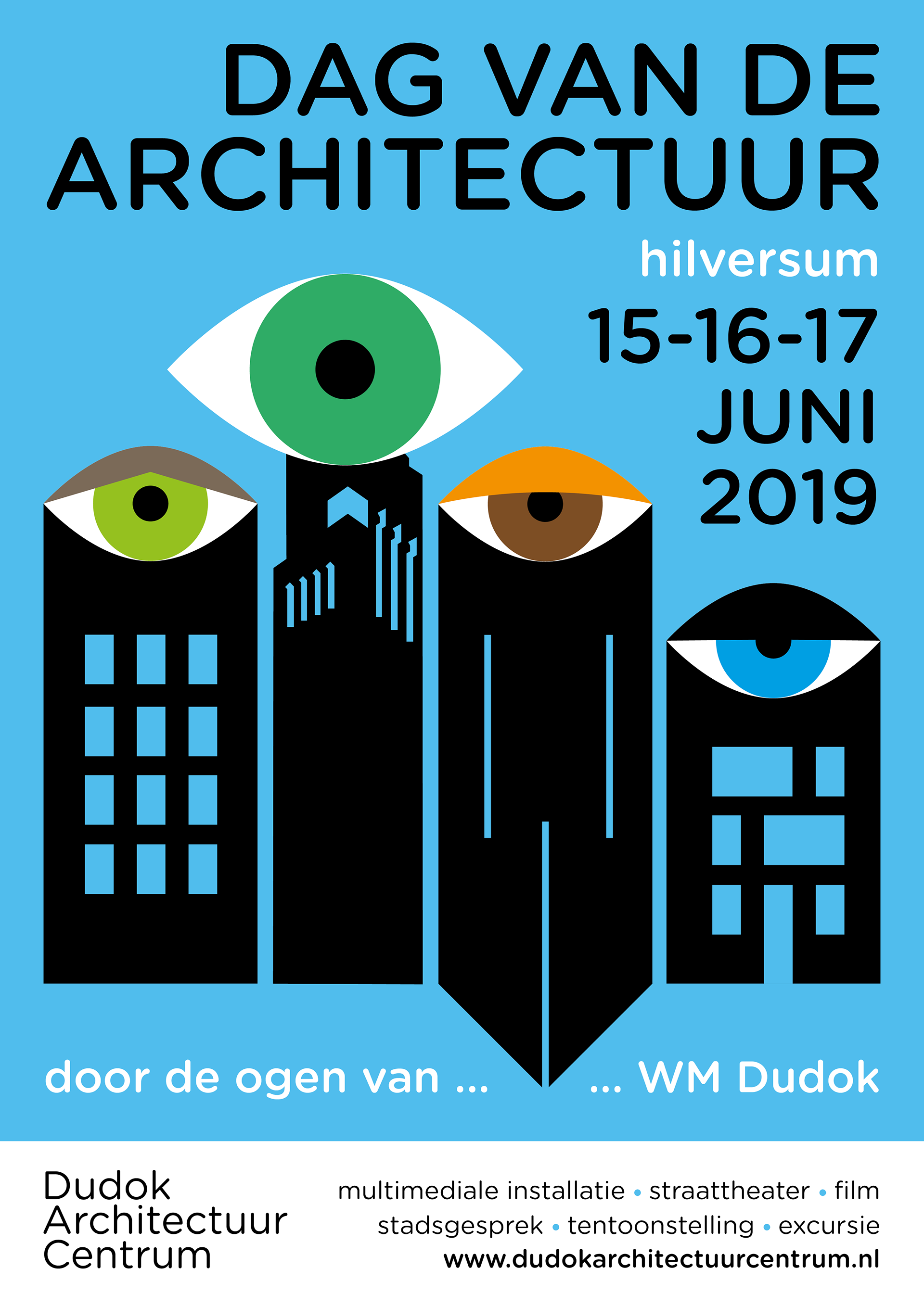 Poster, folder, animated gif en beelden voor narrowcasting voor de Dag van de Architectuur Hilversum.