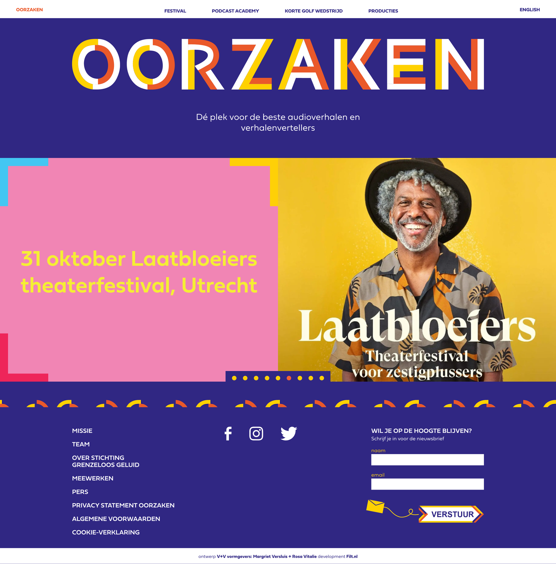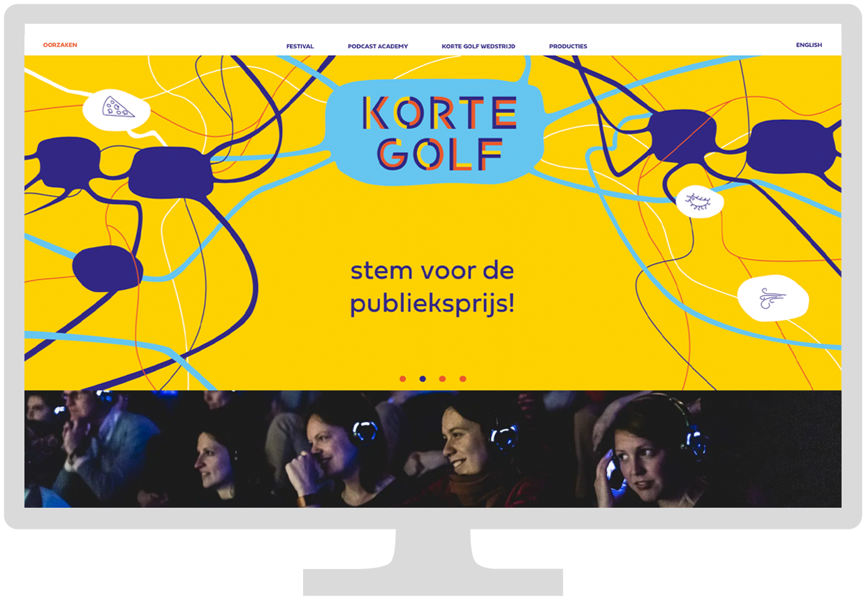 Oorzaken is een tweejaarlijks podcastfestival op verschillende locaties in de stad. Daarnaast is er een Podcast Academy en een audiowedstrijd: Korte Golf. We hebben de visuele identiteit ontwikkeld met o.a. de website, posters, flyers, animated giffen voor socials en de signing op de verschillende locaties.