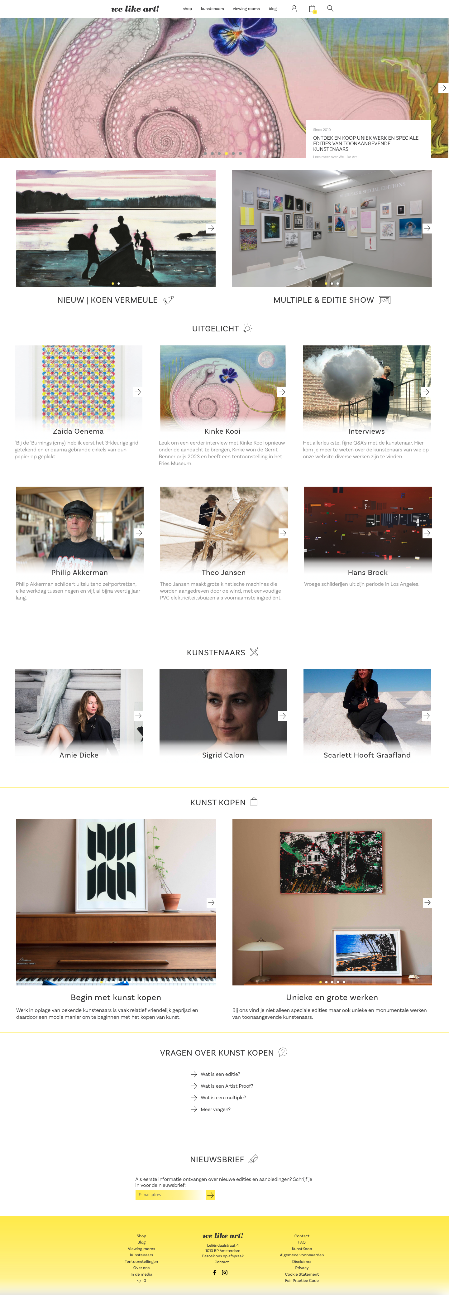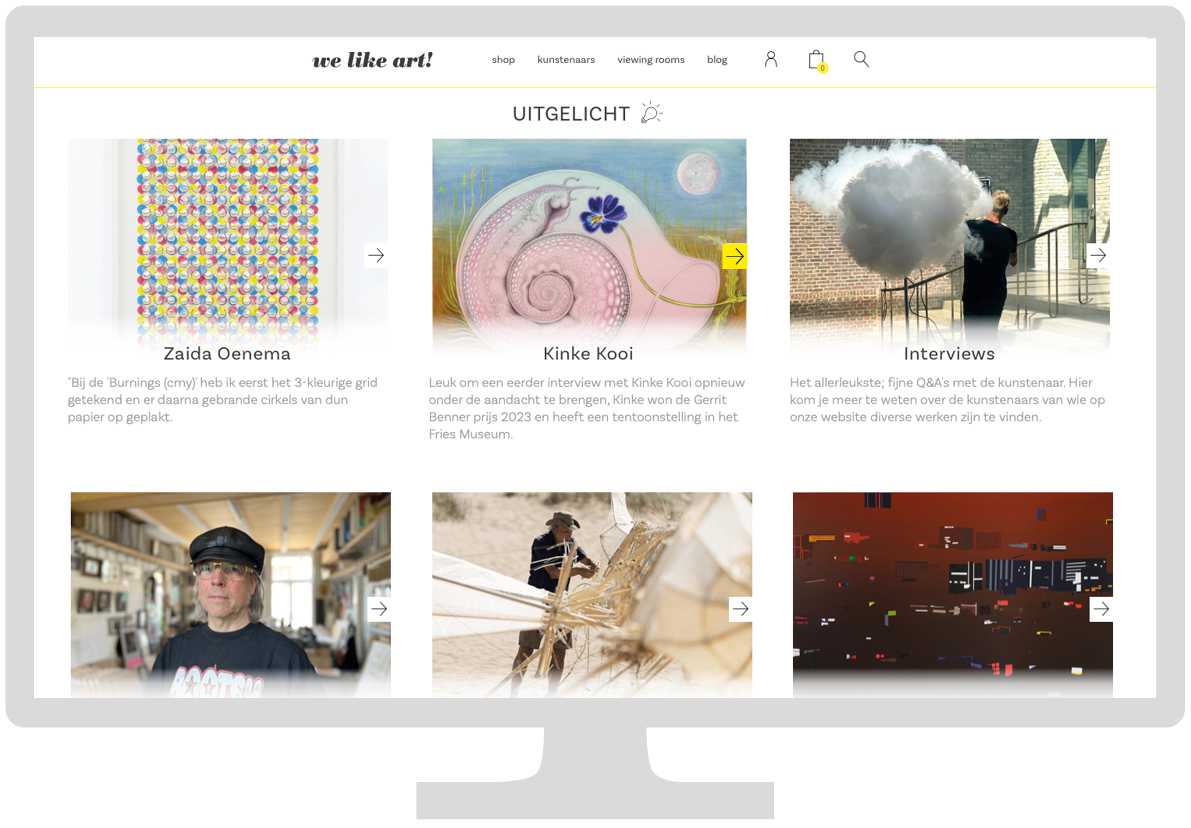 Bij We Like Art vind je een uniek online overzicht van bijzondere kunstwerken van een groot gezelschap toonaangevende kunstenaars. Wij hebben hun website ontwikkeld.